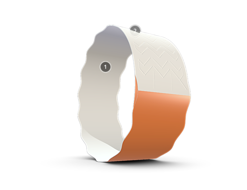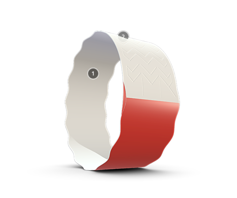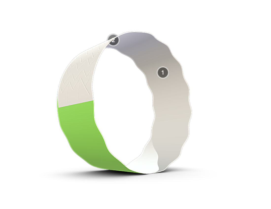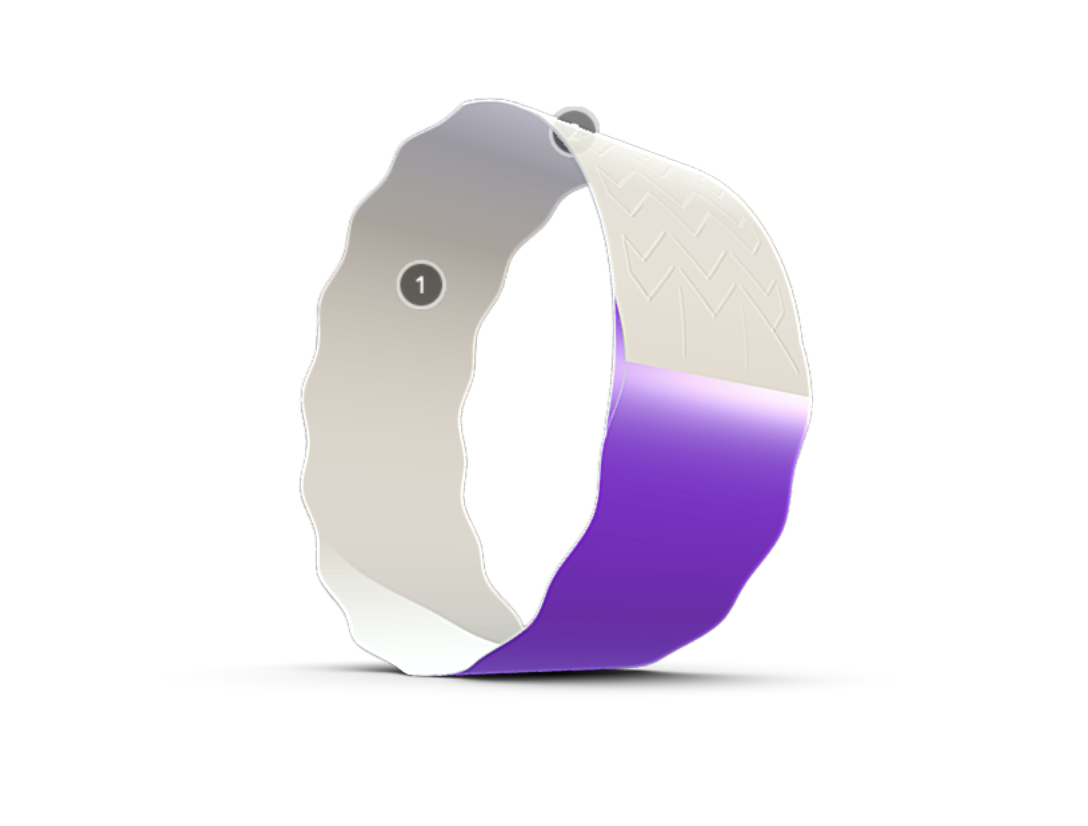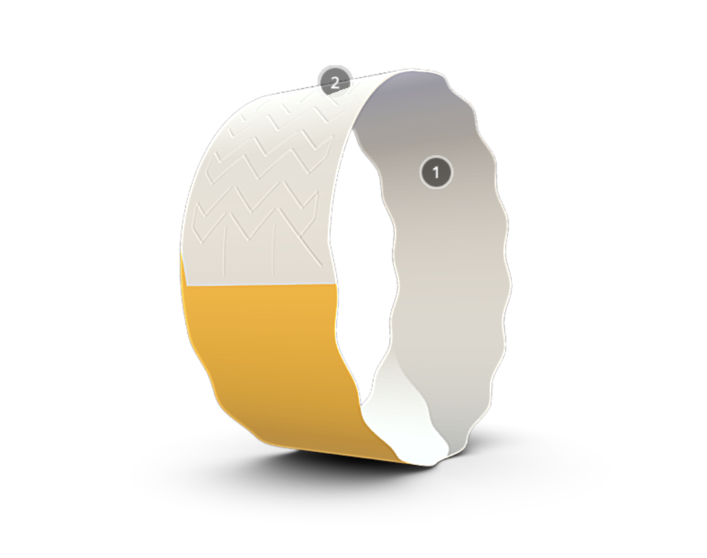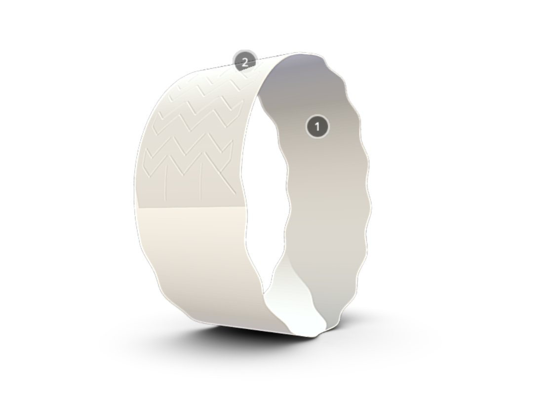 Special perforation in the area of the adhesive layer excludes the reuse of the bracelet after fixing it on the wrist. When peeling, the perforation in the area of the adhesive layer is destroyed, becoming unusable.